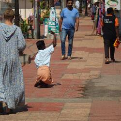 Heute treffen wir uns kurz nach 9 Uhr mit Rose und Lothar und fahren mit 2 Tuk Tuks ins nahegelegene Kovalam. Liegt sehr schön an 2 Buchten, auf der einen Seite begrenzt durch den VizhinjamMeer informatie