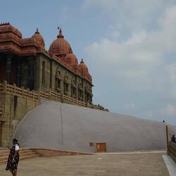 Heute gibt's frühe Behandlung und spätes Frühstück. Um 12 kommt unser Taxi mit Fahrer für den Ausflug an die Südspitze Indiens. Wir wechseln dabei in den Bundesstaat Tamil Nadi, wofür unsereMeer informatie