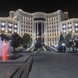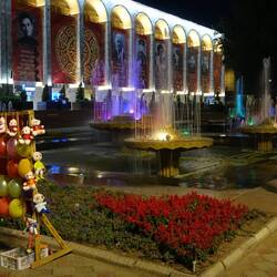 Abends gehe ich nochmal downtown, die Illumination anschauen. Die ist auch ganz nett, aber jetzt nicht mit Registan vergleichbar. Es sind auch Leute unterwegs, aber es ist nicht so richtig voll und es ist auch nicht so eine Volksfestatmosphäre wie am Registran, obwohl es auch einen kleinen Rummel gibt (mit Skaterbahn wie bei uns eine Schlittschuhbahn). So gehe ich bald wieder zurück ins Hotel, packen.