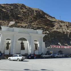 Aus Dushanbe raus fahren wir durch unterschiedliche Landschaften, von kirgisistan-ähnlich geschwungenen aber gelblich kahlen Hügeln über fruchtbare Flusstäler bis zu langsam ansteigenden Bergen in denen auch der. Nurek Dam sehr schön liegt. Immer wieder wird an der Straße Obst angeboten und wenn mal ein Auto hält, springt die ganze Großfamilie zum Verkauf. Zwei Kurven weiter wartet die Industrie auf