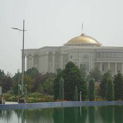 Nach einem gewissen Wechselspiel von Nahrung aufnehmen und... machen wir uns mit unserem Führer Alaoudine auf, etwas von Dushanbe zu sehen. Zuerst fahren wir zur größten Moschee. Die ist wirklich groß und auch ganz neu, erst dieses Jahr im Juni eingeweiht. Obwohl der Wächter offensichtlich deutsche Touris mag, dürfen wir wegen kurzer Hose nicht rein. Schade die Moschee sieht von aus sehr schön aus.