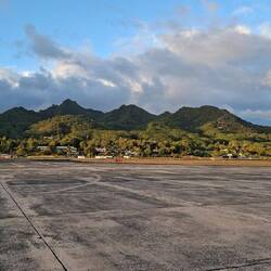 So, Koffer gepackt, dann auf der völlig überfüllten Ringstraße Rarotongas anti-clockwise zum Flughafen, dort ohne viel eigenes Zutun der Koffer entledigt worden. Und dann? Ich meine es schon mal erwähnt zu haben: Fliegen heißt warten🤷‍♂️.