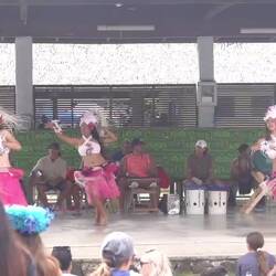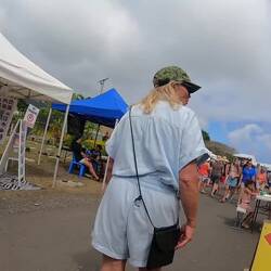 Aber immerhin kamen gegen 9 Uhr unsere Koffer👍, schon eine große Erleichterung, sonst hätten wir erstmal anfangen müssen zu shoppen und rumzuhändeln, wer zahlt. Martina ist wieder soweit "dicht", dass Frühstück drin bleibt, trotzdem nehme ich alleine den Bus "anti-clockwise" nach Avarua auf den Punanga Nui Market. Es gibt auf Rarotonga genau eine Busstrecke, und die wird im Uhrzeigersinn und halt andersrum befahren. Praktisch. Auf dem Markt viele Ständchen, viel Kleidung, Schmuck und Bilder. Ein bisschen Tanz. Und Souvenirs. Natürlich muß ich einen geschnitzten Wal erstehen. Als ich den Verkäufer frage, ob die "made in china" seien muss er herzhaft lachen, verneint dann aber vehement, die seien auf den Cookinseln gemacht. Also gut - immerhin sind alle etwas unterschiedlich und das spricht klar gegen made in....