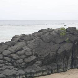 Wir wechseln von der Ostseite der Insel zur Westseite zum Tuoro oder auch Black Rock, dem Ort wo nach der Sage die Seelen der Toten Rarotonga verlassen (N'gai Rereanga Vaerua). Das beeindruckendste an dem Felsen ist das Alter: 1,9 Mio Jahre. Also bald weiter mit dem circlewise Bus, weil Sonntags fährt der andere gar nicht. Überhaupt stellen wir in Avarua fest, dass Sonntags fast nichts geht.