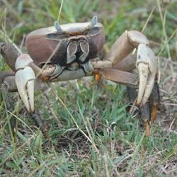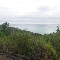 Ich fahre noch mit dem Scooter zum Insel"berg" Maunga Pu, stolze 124 m hoch. Auch wenn es jetzt wieder bewölkt ist und auch hier kein 360° Rundumblick geht, hat man doch eine sehr schöne Sicht auf Aitutaki. Beim Runterfahren bemerke ich, wie immer wieder Landkrabben das Weite suchen und auf der Straße an der Lagune entlang ist richtiger Krabbenverkehr.