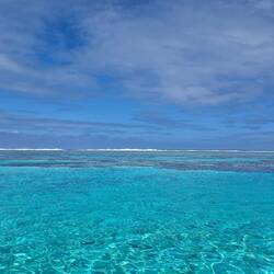 Schon wieder weitgehend blauer Himmel - gut so. Der Samstagsmarkt in Arutanga ist entweder deutlich früher dran als wir, oder es gibt ihn nicht (mehr). Nun gut, wir frühstücken anderswo, verlängern dann erst den Roller um 3 Stunden und dann unsere Ansichten von unwahrscheinlichem Blau. Zuerst an einem lauschigen Plätzchen hinter der alten Landebahn und später nochmal am Ootu beach. Es ist einfach nicht zum sattsehen. Auf dem Rückweg holpert unser Roller doch sehr und siehe da, wir haben einen Platten hinten. Bis zur Tankstelle am Flughafen schaffen wirs, dann hilft uns die Frau von der Tankstelle gut weiter. Kura, unsere Wirtin holt uns zuerst von der Tankstelle ab und bringt uns später zum Flughafen. Um 17.10 Uhr geht der Flug nach Rarotonga und von dort weiter über Auckland (!) nach Samoa.