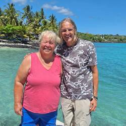 Also vorerst eben. Obwohl wenig Flugzeuge da waren (und auch keine anderen dazu kamen und: angeblich wenn der König verreist die anderen Fluggäste das Nachsehen - auch wörtlich - haben) haben wir doch gegen 9 Uhr Tongatapu verlassen und sind über die endlose Weite des Pazifik, in der nur ab und zu grün-weiss-türkise "Spiegeleier" für Abwechslung sorgen, nach Vava'u geflogen. Bei Vava'u hat der Koch nicht so richtig aufgepasst, so dass das Spiegelei recht zerklüftet ausfällt, mit Steilküste hier, Meeresarmen dort und kleinen Lagunen da hinten. Endlich angekommen holt Nia vom Flying Annie Moa, für 4 Nächte unsere Unterkunft, uns ab und dann ist erstmal Schlaf nachholen angesagt. Weil: morgen gibt's um 6 Uhr early breakfast und um 6:45 Uhr ist Treffen an der Mole für whalewatching.Read more