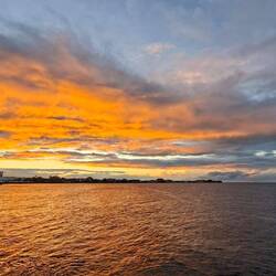 Gegen Mittag ist nur noch wenig Verkehr, ich setze mich in Trader Jacks am Wasser auf ein Cola und unterhalte mich mit einem Paar: in England geboren, in Neuseeland wohnend, in Rente und das halbe Jahr auf Reisen. Spannend. Clockwise zurück, Martina macht vorwärts👍. Spätnachmittags fängts wie gestern an zu regnen, da müssten eigentlich die 5 Regentage für September bald durch sein. Gegen 6 gehen wir ins Nebenhaus und sitzen dort im 1. Stock genial mit Blick aufs Meer.