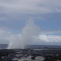 Unterwegs Abstecher zu den sehr beeindruckenden Alofaaga Blowholes: das Wasser wird unter dem Druck der Brandung durch Lavasteinlöcher gepresst und heraus kommt ein gigantischer "Blas", wohl bis zu 80 m hoch. Sieht super aus, nass wird man auch.