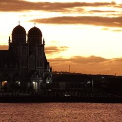 Irgendwann zurück, den Apia Stadtstrand gecheckt ( is nix) und dann noch am Hafen mit schönem Blick auf Apias größte Kirche auf einen Cappuccino verzichtet (sorry, we ran out of coffee). Dann halt Cola. Heute abend als Ersatz für den Nachtmarkt eine fia fia Show gebucht.