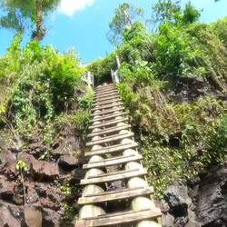 Weiter auf der Blumenstraße nach Westen bis zum To-Sua Ocean Trench. Zwei große Felssenken, die mit Meerwasser gefüllt sind. In der unteren kann man baden, wenn man die 20 m Steilleiter runter kommt. Kommt man. Und das Baden in diesen Loch, die Wände grün überwuchert, ist irgendwie unwirklich. Genauso der Blick von oben auf die Küste mit Brandung. Unwirklich schön. Weil auch die Samoanis Feierabend mögen, ist um 5 Uhr "Badeschluss", wir fahren zurück.
