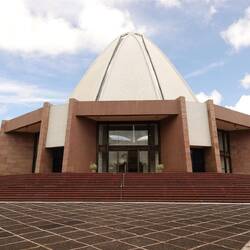 Gut gestärkt fahren wir später los, auf die Island crossing road, die - tatsächlich - einmal quer durch die Insel an die Südküste führt. Erster Stop ist der "Baha'i House Of Worship Samoa" Tempel dieser Glaubensrichtung (einer ihrer 8 Tempel steht in Frankfurt - aber da die noch kein Bier gezahlt haben... ich kenns jedenfalls nicht). Nette Anlage, aber den Tempel selbst empfinde ich als eher uninspiriert. Dann weiter zu den Papapapaitai Falls. Schöne Szenerie aber leider nur von weitem betrachtbar.