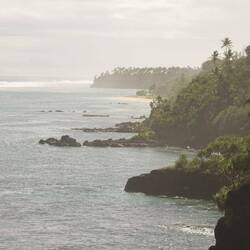 Nachdem ich heute morgen meine Hoffnung auf eine samoanische Parade endgültig ad acta legen durfte wurde uns im Gegenzug eröffnet, dass der Nachtmarkt, den wir heute besuchen wollten, auch nicht stattfindet. Hm. Also sind wir nochmal die Island crossing road gefahren, aber dieses Mal an der Südküste nach Westen abgebogen, Richtung "return to paradise beach". Die Richtung ist gut, unsere Gesinnung aufrecht (Touris, nur gucken), aber den Strand gibt's nur im Resort. Da ist die security eisenhart. Als wir unverichteter Dinge davon fahren, scheint es ihm doch etwas peinlich - recht so.