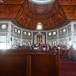 Heute ist Apia. Mit angeblich 38.000 Einwohnern wirds ja wohl sowas wie ein Zentrum geben. Obwohl im Reiseführer steht, dass Apia seine frühere Südsee- oder auch Kolonialstilromantik längst verloren hat. Tja, naja der Reiseführer hat recht. So isses. Alte Kolonialbauten finden wir keine mehr, dafür ergänzen eher nüchterne Zweckbauten die "skyline" von Apia, die schon noch von der Immaculate Conception Cathedral beherrscht wird. Die Kirche ist innen richtig schön (und das sag ich über Kirchen echt selten) mit einer beeindruckenden Holzdecke. Wir wohnen noch ein bisschen den Proben des Jugendkirchenchors bei.