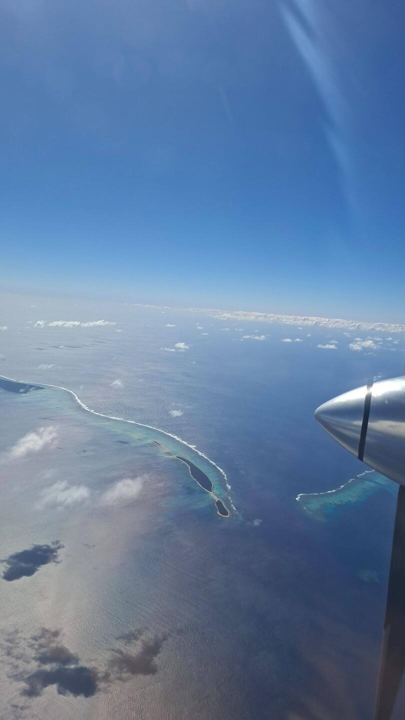 Erst mal werden wir pünktlich zum Flughafen gebracht und unsere Koffer werden auch ins Flugzeug geladen (ist wohl nicht immer so, vor allem wenn man spät kommt). Der Rückflug nach Tongatapu bringt wieder wunderschöne Sichten auf die versprengten Inselchen und Atolle der Tonga-Inseln.