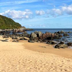 Wunderschöne Strönde mit sauberem Wasser säumten, abwechselnd mit spannenden Felsformationen meinen Weg entlang der nordirischen Küste,