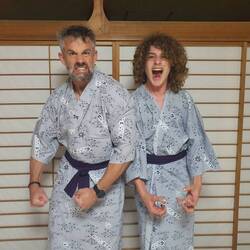 We finished the night sitting cross-legged around the table, enjoying green tea and Alan's surprise Gelato buffet💗. The view out the window of twinkling lights and the boys in kimonos is just magic. 😁❤️ Life is still great. Just one more quick spray.....