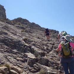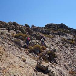 We drove a van to the small town of Galeria south of Calvi. From there we spent most of the day hiking up Capu Tondu, which is a mountain 839 meters high. It was extremely hot and the temperature got above 30 today with no breeze. The way up was on a path with a lot of loose scree and in the trees for the first 400 meters and then it steepened to bare rock with clambering. Barb waited for us around 550 meters and the rest of us carried on. It was very nice at the summit. You could see over to Monte Cinto which is the highest mountain in Corsica and still has a little snow. We went slowly down to be careful with our footing. When we got to the bottom around 3 pm, we headed to the bar and had drinks. Then we went for a swim in the ocean at Galeria. We drove home and we are now back in our room sorting things out.Baca lagi