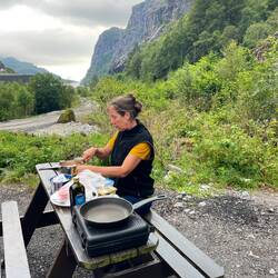 Sind morgens zum Kobolten gelaufen, einem kleinen Felsen der frei in einer Spalte steckt und auf dem man fast über dem Fjord schwebt. Auf dem Rückweg sind wir klitschnass geworden, aber bald kamRead more
