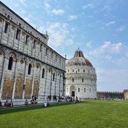 Once off the train, we hopped on a local bus that whisked us straight to the iconic Leaning Tower of Pisa. No long walks we were literally dropped right at the gates of Piazza dei Miracoli, home to the famous tilt we've all seen in pictures plus the beautiful cathedral and baptistery.