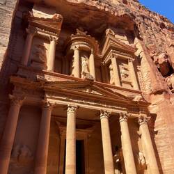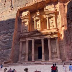 The Siq is a long, narrow gorge that winds for about 1.2km. Its towering sandstone walls rise nearly 80 meters above, with incredible colors and patterns that shift with the light. Ancient Nabataeans once carved channels along its sides to bring water into the city which you can still see to this day. Walking through it felt like a passageway into another world every twist and turn building the anticipation of what was waiting ahead.