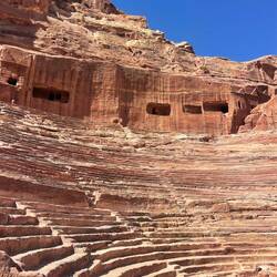 But Petra is so much more than the Treasury. As we continued our journey, we passed ancient cave houses and wandered past the massive amphitheatre, carved entirely from stone, which once held thousands of people. Every corner revealed something new and extraordinary.