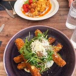 With a jam packed schedule ahead, we got up early, got ready, and headed straight out the door for something we haven’t done in ages…. breakfast out. The cutest little cafe caught our eye, and it ended up being such a cosy, delicious start to the day. Jayde ordered scrambled eggs with chorizo, and I went for the courgette fritters definitely not my usual choice but absolutely delicious.