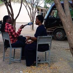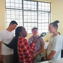 Am heutigen Tag wurde unserem Projekt zum Bau nachhaltiger Solarlampen nochmals besondere Aufmerksamkeit zuteil: Zunächst besuchte eine Gruppe von Vertreter:innen der Elternschaft an der Msitu wa Tembo Secondary School unseren Workshop und machte sich ein Bild von der gemeinschaftlichen Arbeit der deutschen und tansanischen Schüler:innen. Große Freude bereitete zudem der Besuch der Journalist:in Veronica Natalis, die für die „Deutsche Welle“ berichtet und in diesem Jahr als beste Journalistin Tansanias in der Rubrik Umwelt ausgezeichnet wurde. Auch sie informierte sich über die Arbeit der vergangenen Tage und die Ziele, die mit unserem Solarprojekt verbunden sind. Ein Radio- und Videobeitrag, für die sie auch Schüler:innen sowie Lehrkräfte interviewte, wird in den nächsten Tagen veröffentlicht.