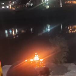 Am Tage fahre ich zu dem Platz wo der höchste Tannenbaum steht.33 Grad. Dort singen Kinder. Buden sind aufgestellt.