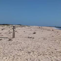 Frieda hat es tatsächlich 20 Kilometer auf einen Campingplatz am Strand und Meer geschafft