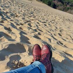 Habe heute morgen als erstes ein halbes Kilo Sand von der Düne in meinem Bett gefunden😊!