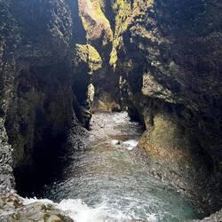 Hier konnten wir schön die sechseckigen Basaltsäulen sehen. Leider war es aber sehr regnerisch und wir wurden schön nass.😅