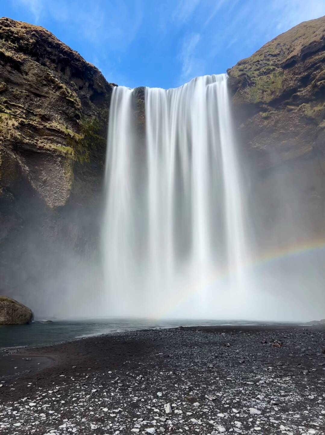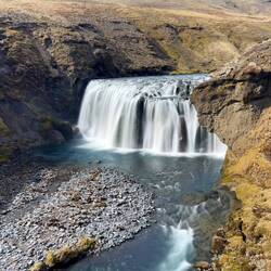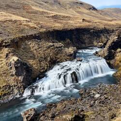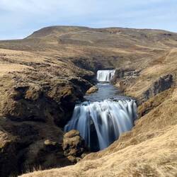 Am 25 Meter breiten und 60 Meter hohen Skógafoss gibt es flussaufwärts die nächsten 3 Kilometer noch 7 weitere Wasserfälle. Die Wanderung lohnt sich auf jeden Fall.