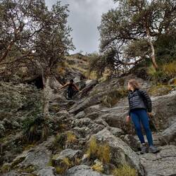 Le chemin n'est pas le plus facile qu'on est rencontré. C'est assez pentu, par moment il y a même une corde pour faciliter la montée. On est proche de l'escalade et les lamas ressemblent plus à des chamois.