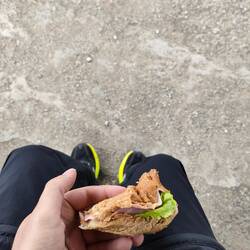 On s'arrête manger notre petit picnic, à savoir des petits sandwich jambon, laitue et Philadelphia pour mes deux mangeuses de pipi de vache. Les sandwich font un peu la tête après cette longue matinée (voir photo).