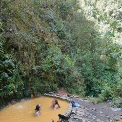 Après toutes ces émotions, ils s'autorisent un moment de détente dans des bains thermaux jaunes! 🛀 Oui oui jaunes à cause de la forte concentration en soufre. Seuls, au milieu de cette nature époustouflante, les trois amis apprécient les bouillonnements du bain et papotent longuement.