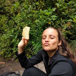 Les obstacles qui s'ensuivent sont moindres comparés à ceux déjà franchis, de simples petits ruisseaux à traverser, rien qui ne puisse inquiéter les compagnons 🏊♀️ Ils ont le coeur bien accroché mais aussi le ventre car ils n'hésitent pas à goûter de l'eau naturellement gazeuse directement sorti du volcan a proximité 🚰 Enfin, ils arrivent au bout de leur peine, l'oeil du fantasme! Ils sont pas bien sûrs d'avoir vu le bon truc mais c'était quand même impressionnant.