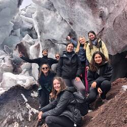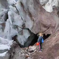 On arpente tranquillement les chemins du volcan la terre est tantôt rouge tantôt noir et on distingue clairement les strates des différentes éruptions. On se dirige ensuite vers le glacier.