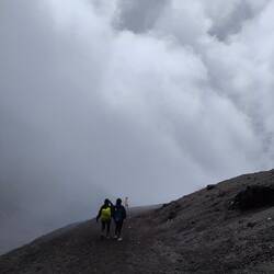 C'est parti on entame la montée du volcan jusqu'au parking. C'est raide et la voiture de notre cher chauffeur n'a plus 20 ans ou c'est peut être ça le soucis elle a 20 ans. Si bien qu'à un moment on est l'arrêt. Le moteur force et une légère odeur de brûlé chatouille nos narines. Hop on repart ouf sauvés, nous voilà à 4500m.