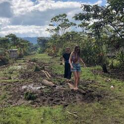 Durant ces quelques jours, on se reposera beaucoup, on mangera beaucoup, on spéculera beaucoup sur la suite des événements de la grève mais surtout on se liera d’amitié avec les deux chiens de la maison qui nous suivrons dans toutes nos péripéties pour rejoindre la ville. Effectivement, après avoir suivi quelques filous équatoriens, nous avons trouvé un chemin quelques peu hasardeux et boueux pour rejoindre Puyo sans barrages. L’Allé fut très facile. Le retour un peu moins. Après quelques fous rires dans la boue et on se rend vite compte que lis sommes totalement perdues. On se retrouve alors à se faire escorter par deux jeunes enfants pour cause de perte des troupes dans la nuit tombante. Pas facile de s’y retrouver dans cette forêt amazonienne.