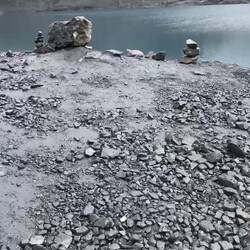 Le glacier est là, avec son lac et ses pierres multicolores. Le lac, c’est nouveau, merci le changement climatique…il pleut sous le glacier qui semble fondre à une vitesse folle, un spectacle beau et triste.