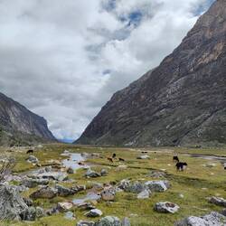 Après un pic nique au bord d'une lagune (décidément) il ne reste plus que 2 de marche dans un canyon pour arriver à Llamacorral (3760m), le campement.