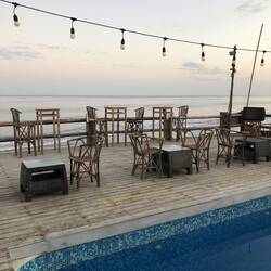 On arrive à l'hôtel. Piscine avec vue sur l'océan Pacifique. Que demande le peuple? Que demandent les lamas? 🏖️