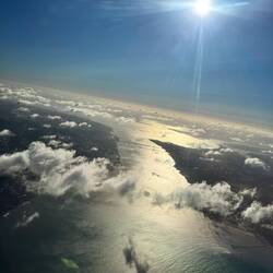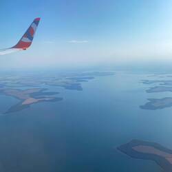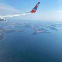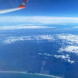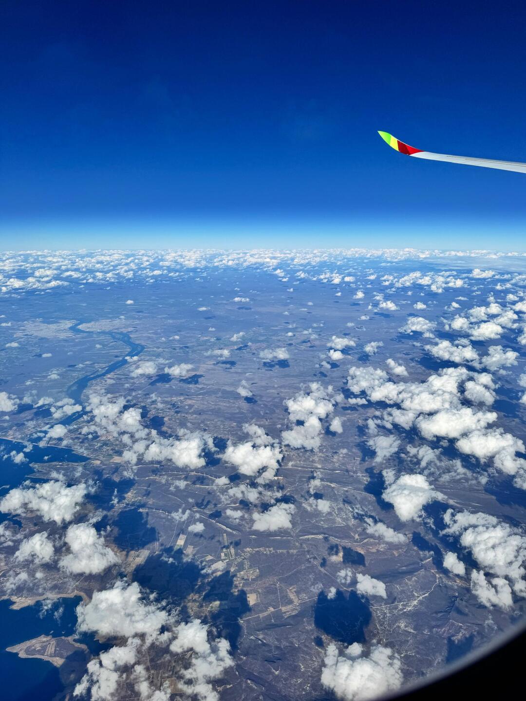 Der Start verläuft entspannt, doch kurz danach spüren wir die ersten Luftlöcher und kleinere Turbulenzen. Das Flugzeug steigt höher, und schon baldEn savoir plus
