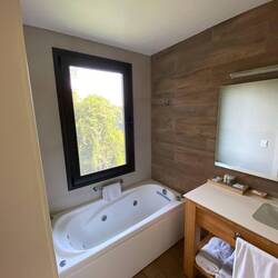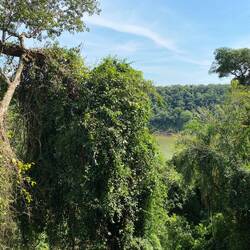 Wir sind gut in unserem Hotel angekommen – der Jungle Lodge Iguazú in Argentinien. Von hier aus haben wir einen beeindruckenden Blick direkt auf die Grenze: Der Fluss trennt uns von Brasilien, undEn savoir plus