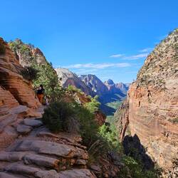 Nous nous sommes levées tôt, avec un magnifique levé de soleil sur les montagnes. Un petit déjeuner rapide et hop on s'en va pour le parc Zion. On arrive tôt, avant l'ouverture officielle à 8hLeggi altro