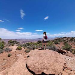 Comme à l'habitude, on se lève tôt! On répète la formule de la veille: on roule un petit bout avant de s'arrêter en route pour déjeuner. Nous sommes en direction de Moab. On arrête au abord deLeggi altro