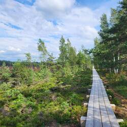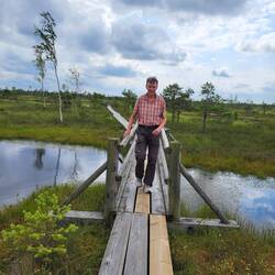 Südwestlich von Riga befindet sich der Nationalpark Kemeri. Durch das 8000 Jahre alte Hochmoor Kemeri führt ein 5 km langer Bohlenweg. Da relativ viel los ist, bleibt Leni besser im Wohnmobil. IchLeer más