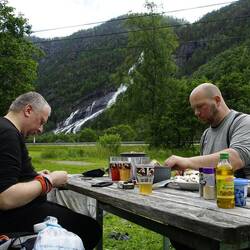 Wieder Campingplatz direkt am Wasserfall bekommen 🥰. Und es gab Reis (Es gibt Menschen die behaupten Cuefux mag kein Reis 😉)