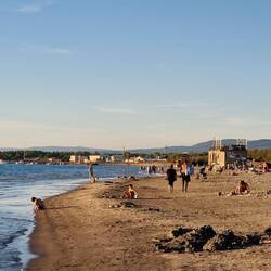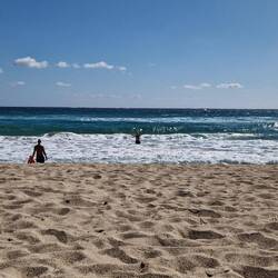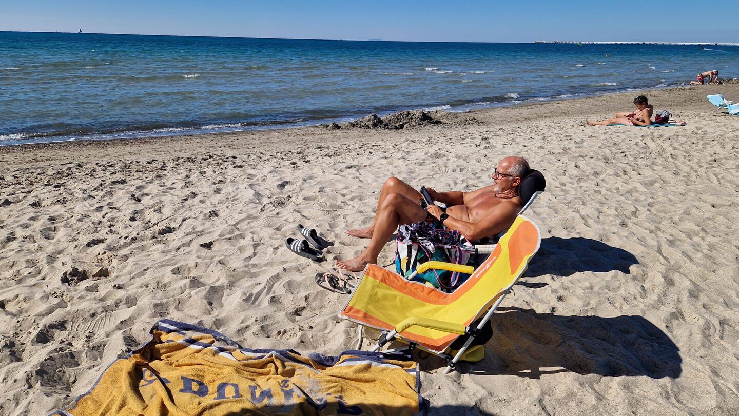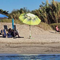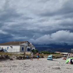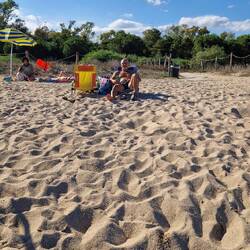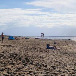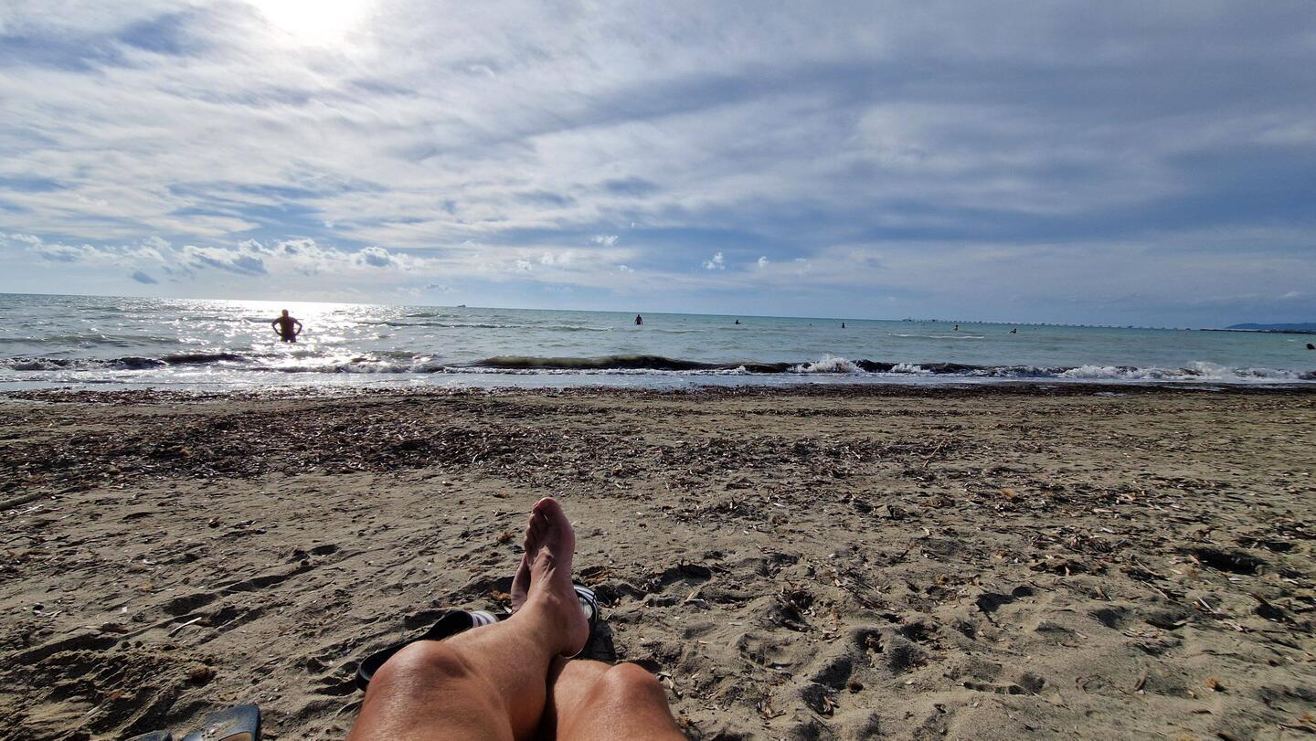 Heute genießen wir noch den Strand, da es morgen Gewitter geben soll und der Tag regnerisch wird .